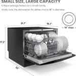 Portable Dishwasher, 6 Place Settings & 8 Washing Programs, Speed, Baby-Care, ECO& Glass, Dish Washer for Dorm, RV& Apartment, Black