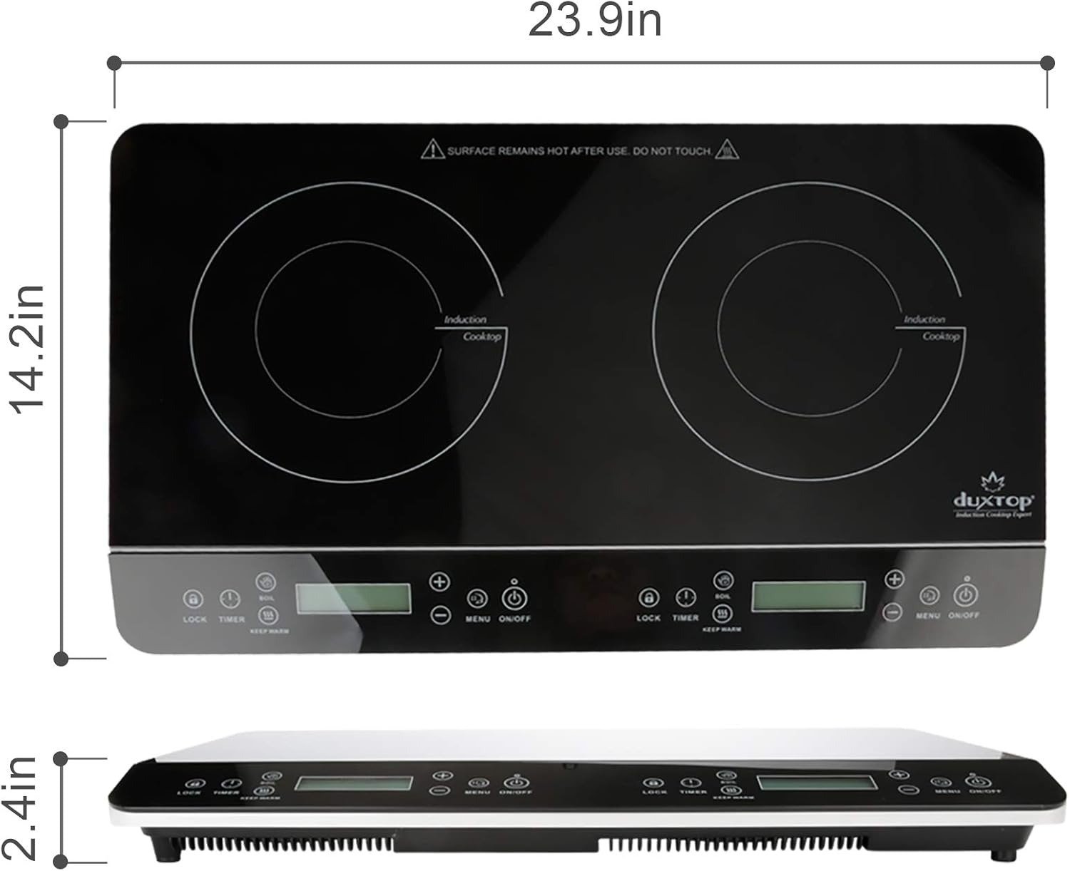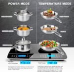 - DUAL HEATING ZONES: This professional digital countertop induction cooktop by Duxtop is equipped with two independent heating zones that allow you to set each one separately using the LCD display screen