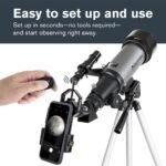 - PERFECT FIRST TELESCOPE FOR BEGINNERS: Designed for adults and kids to enjoy together, this beginner-friendly telescope sets up in minutes and delivers rewarding views with no prior experience required.