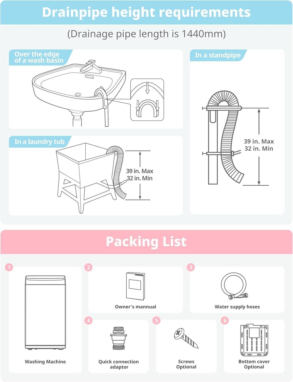 - This top load compact washing machine with only 18.1 inches in width, 17.7 inches in-depth, and 31.5 inches in height, this portable washer is able to be stored easily. You can store it in your cabinet, RV, dorm, or even bathtub Even better, it comes with wheels and handles for easy movement. It is a perfect choice for small households with limited space and minimal optimal.