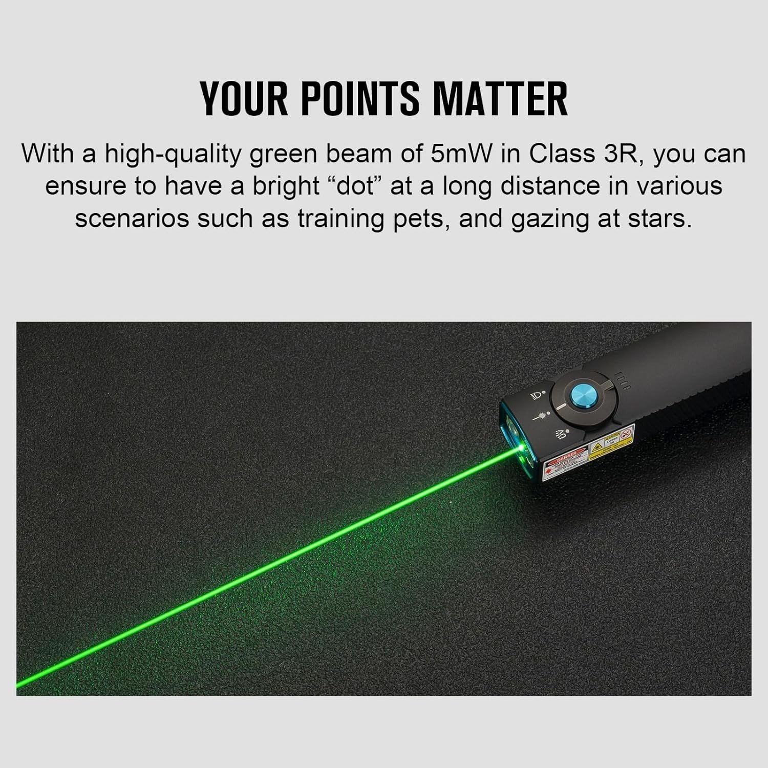 - The output of the green beam is ≤5mW, the class is 3R