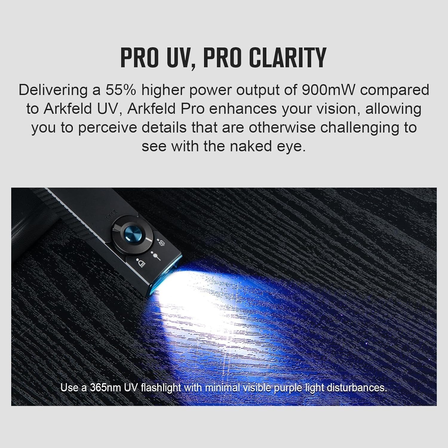 - [Higher UV Intensity] High-power output of up to 900mW at a 365nm wavelength, offering a purer and more professional UV light experience compared to standard 395nm UV lights