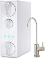 - Superb Filtration Performance – The RO500AK-BN ro water filter features a powerful 3-stage filtration process. It begins with a 2-in-1 composite sediment and carbon block filter to effectively reduce rust, sand, chlorine, and other particles. The advanced RO membrane removes up to 99% of over 1,000 harmful contaminants, including 98% of lead, as well as fluoride, arsenic, asbestos, calcium, and more. Finally, a carbon alkaline filter balances the water’s pH and adds beneficial minerals to enhance taste and support overall wellness.