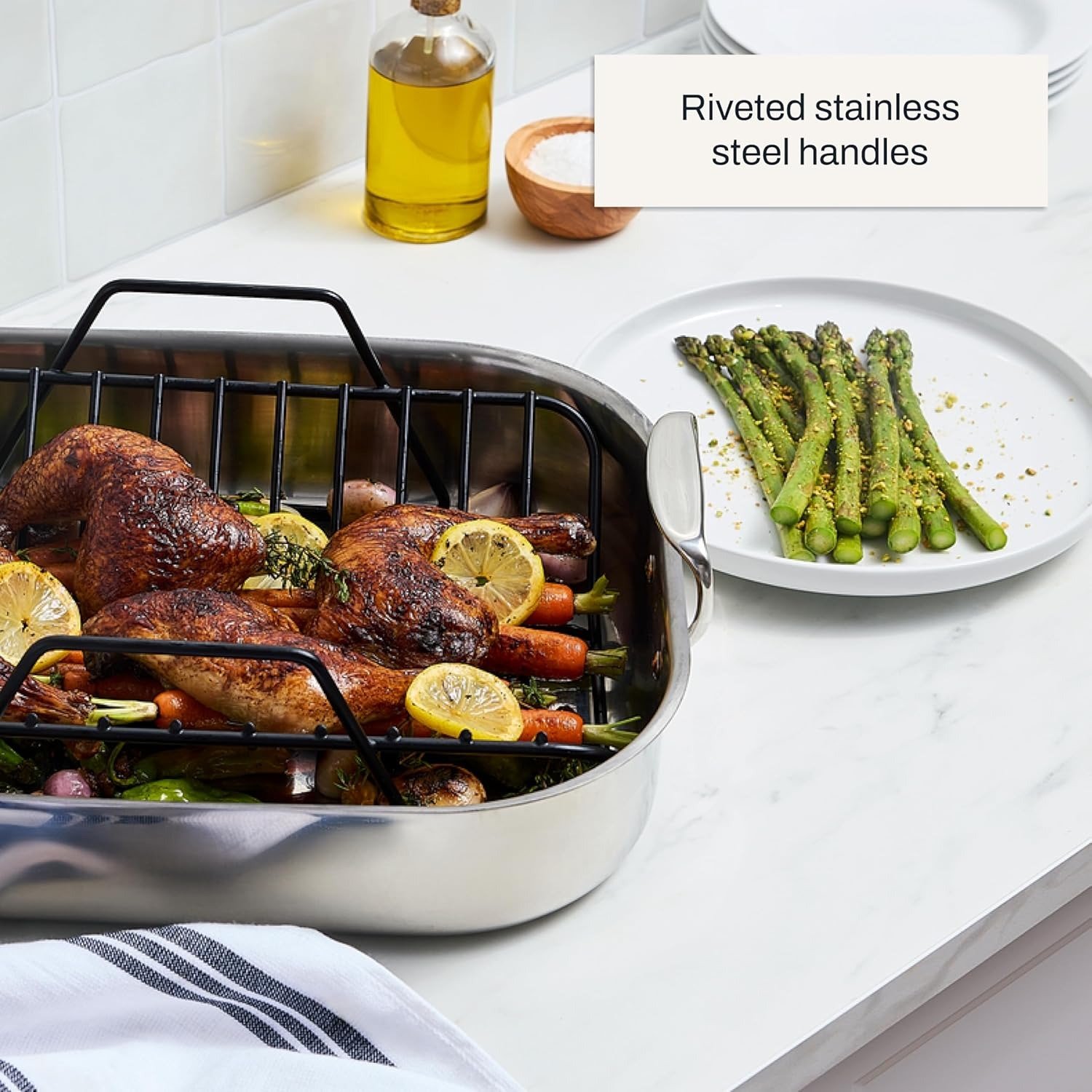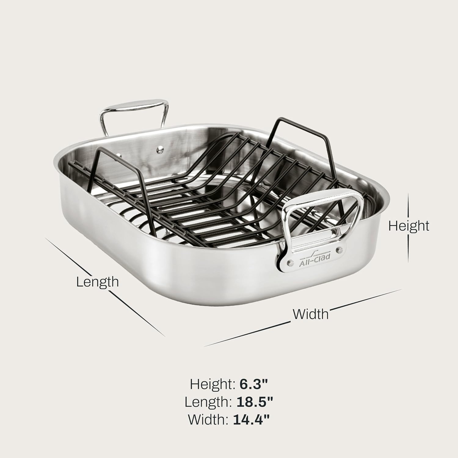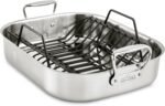 • This All-Clad Large Stainless Steel Roaster with Rack, 13 x 16 inch provides ample space for all your roasting needs, ensuring you can cook large cuts of meat or multiple dishes simultaneously.