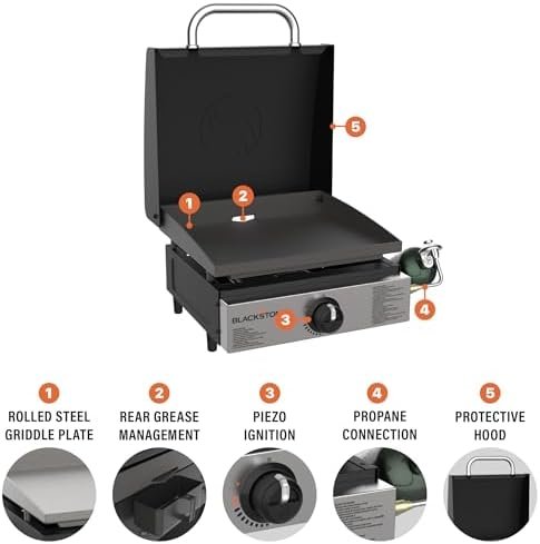 Stainless Steel Propane Gas Portable, Flat Top Griddle Frill Station for Kitchen, Camping, Outdoor, Tailgating, Tabletop, Countertop – Heavy Duty & 12, 000 BTUs, 17 Inch, Black