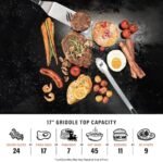 • FAMILY SIZE COOKING SURFACE: The roomy and spacious 17 inches (268 sq. inch) cooking surface of our stainless steel griddle can cook up 9 burgers or 9 pancakes or 12 eggs at once, which is enough to make burgers or breakfast for a family of four.