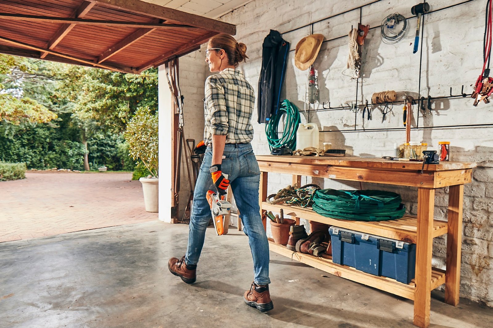 The STIHL GTA 26 battery-powered garden pruner is the first of its kind on the U.S. market. With its lightweight and compact design, the GTA 26 is ideal for a range of gardening tasks. The four-inch guide bar allows for precise cutting and pruning, and its size makes it possible to get to those hard-to-reach spots. Its rubber grips provide ease of use and minimize wrist torsion. This pruner is also easy to maintain with toolless replacement of the removable bar and chain. This saw chain gives you the ability to make smooth and precise cuts with a lower kickback tendency. An LED light display provides charge level and status of the tool. With a battery, charger, multi-oil, and even a transport bag included, the GTA 26 set comes with everything you need to take on a variety of landscaping tasks.