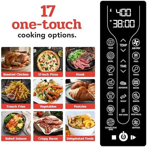 Multi-Use Cooking Power – Air fry, bake, broil, roast, dehydrate, and toast with 17 presets for easy cooking, from crispy fries to roasted chicken and fresh-baked pizza
