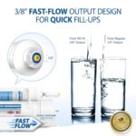 - QUICK DISPENSE: Big 3/8” fast-flow output design increases the flow rate of water from tank to faucet. The higher water flow will allow you to fill up a glass or pitcher of water much faster. Reduces wait time when drawing and filling large pots of water for making soups or beverages.