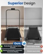 • Easy Storage: This walking pad with handle bar convenient folding design allows for easy storage either upright against the wall or easily pushed into the bottom of the bed or sofa, taking up less than 0.5 square meters of space. This solution perfectly addresses the storage challenges faced by small-sized households.