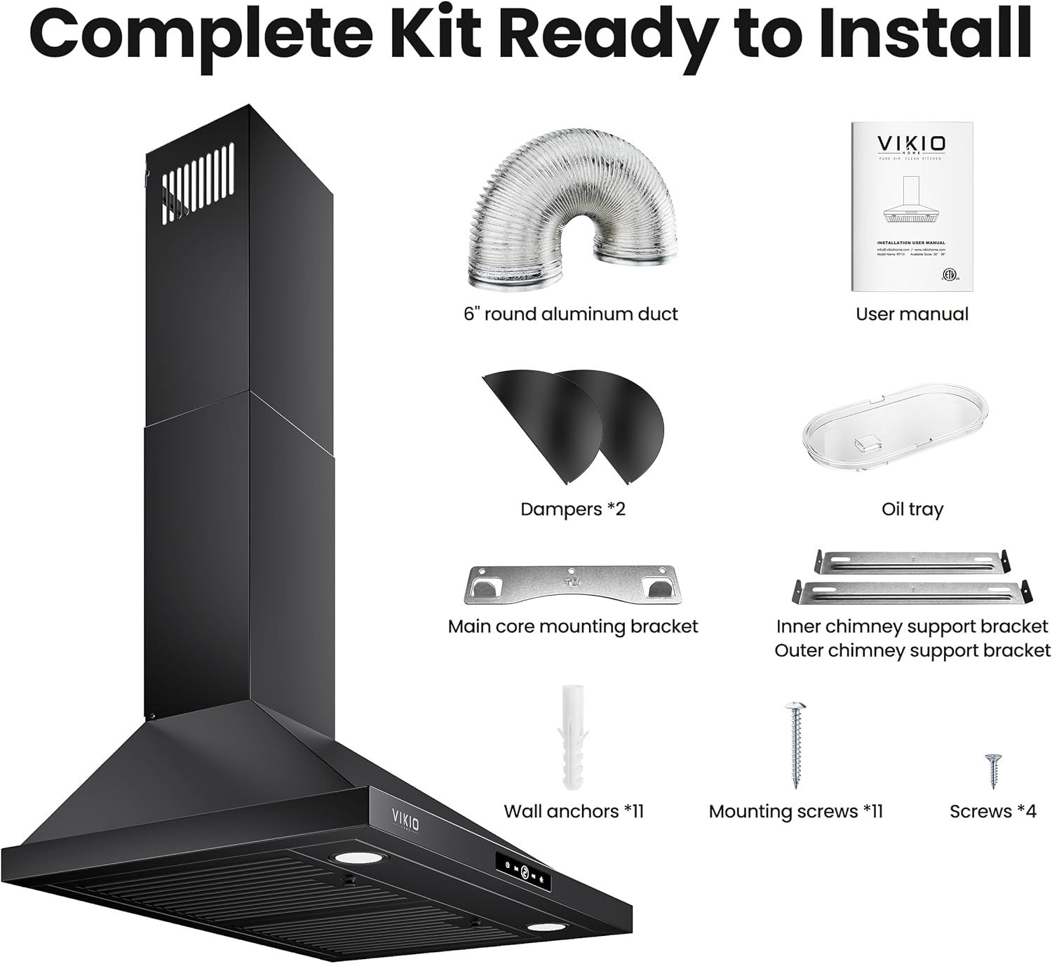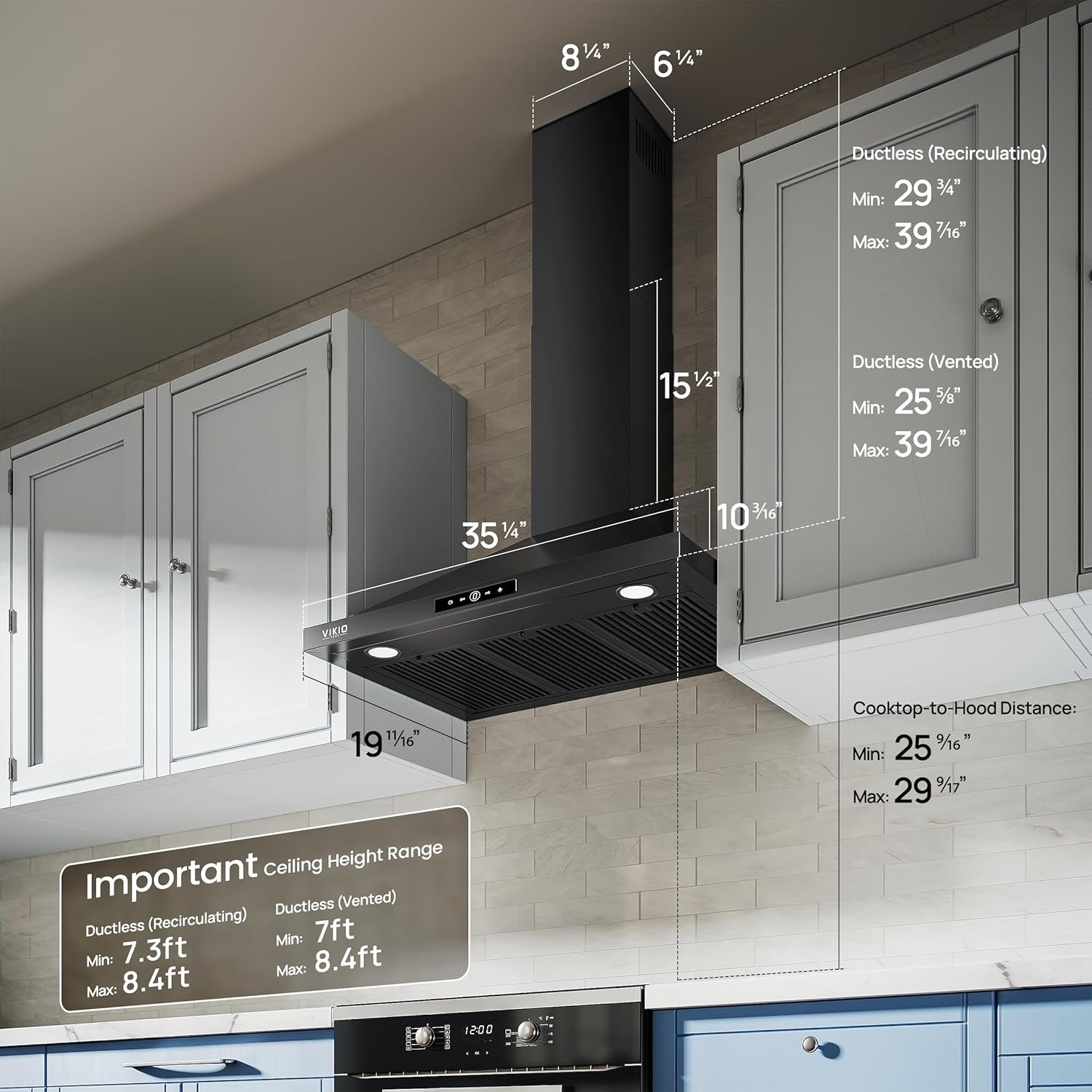 - 【Premium Stove Vent Hood】Crafted from 430-grade brushed stainless steel, the sleek pyramidal design of the wall mount range hood 36-inch complements most kitchen decors. Optional carbon filter kits are available for ductless installations, offering flexibility for any kitchen setup.