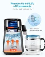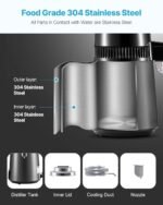 - High-Quality Materials: The distilled water maker features a 304 stainless steel interior water tank. The container is made of high borosilicate glass, with all parts in contact with water being of food-grade materials