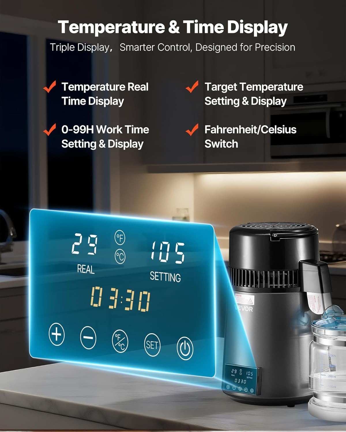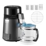 VEVOR Water Distiller, 4L /1.1 Gallon Pure Water Distilled for Home Table Countertop, 750W Distilling Maker with Glass Carafe, Stainless Steel Interior Drinking Machine to Make Clean Waters, Grey