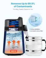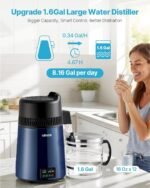 - Efficient Distillation: The 900W water distiller operates at a speed exceeding 0.34GAL/1.3L per hour. The water distiller can distill a total of 8.16GAL/31.2L each day
