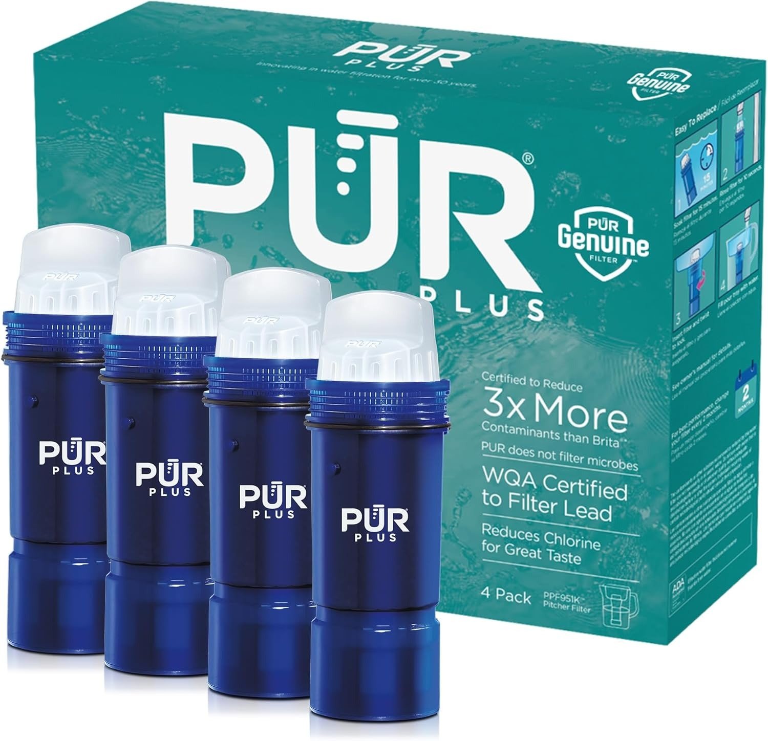 PUR PLUS Water Pitcher Replacement Filter with Lead Reduction (4 Pack), Blue – Compatible with all PUR Pitcher and Dispenser Filtration Systems