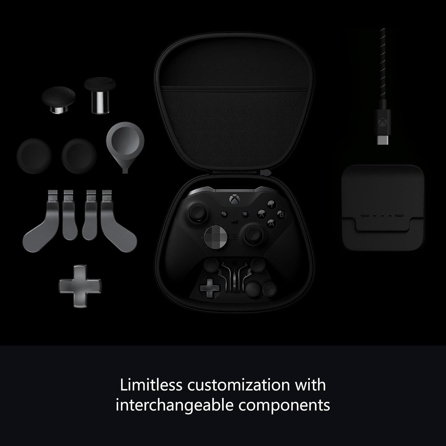 - Xbox Elite Wireless Controller Series 2 for Xbox One, Xbox Series S, Xbox Series X and PC. Tailor the controller to your preferred gaming style with interchangeable thumbstick and paddle shapes. Save up to 3 custom profiles and 1 default profile on the controller and switch between them on the fly with the Profile button. Use Xbox Wireless, Bluetooth or the included USB-C cable to play across your Xbox One and Windows 10 devices.. What’s in the box: Xbox Elite Wireless Controller Series 2;
