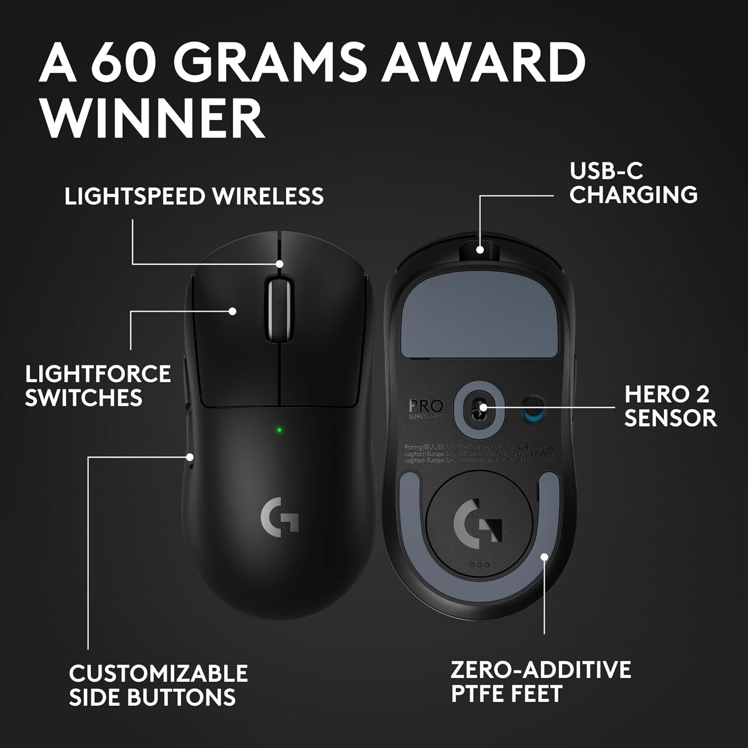 - Advanced Performance: Our championship-winning, wireless mouse with advanced HERO 2 sensor, reliable LIGHTSPEED wireless performance, USB-C charging, and 88-hour battery life all at 60 g