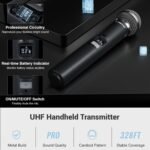 - DURABLE METAL CONSTRUCTION: Built with a sleek metal design, the UHF mic receiver and wireless professional microphone not only offer a premium look and feel but also ensure extended durability and an enhanced user experience. Moreover, the handheld microphone’s mute function provides added convenience and flexibility, allowing for quick control during performances. Suitable cordless microphone for church, wedding, karaoke, DJ gigs, public speaking, etc